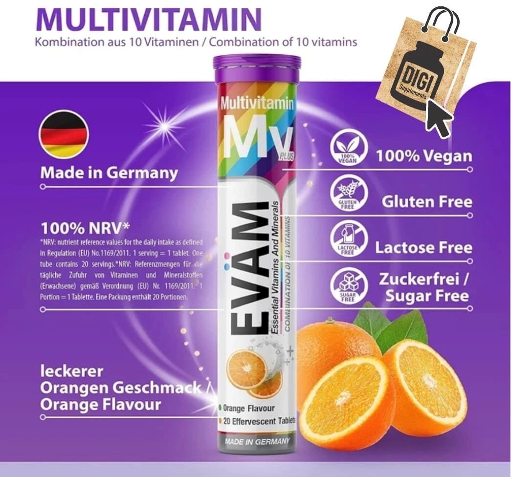 قرص جوشان مولتی ویتامین ایوام ۲۰ عددی طعم پرتقال