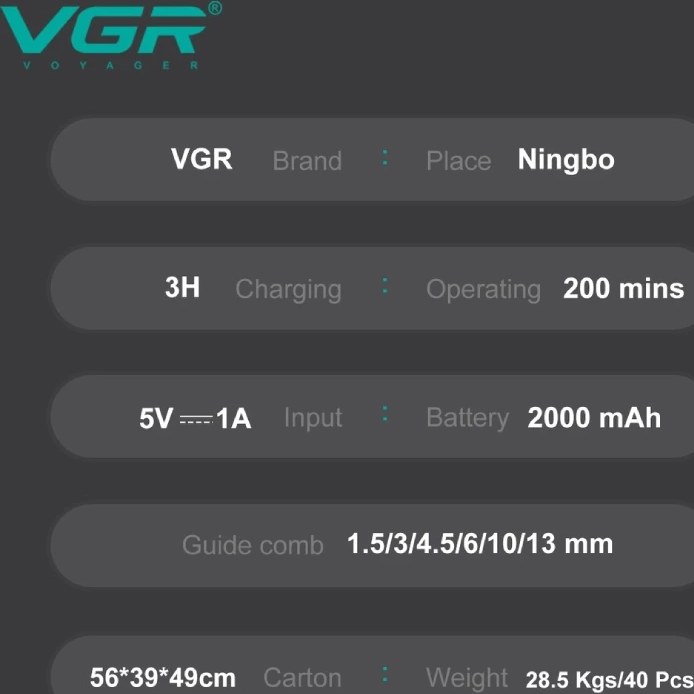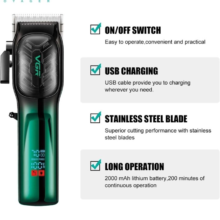 ماشین اصلاح وی جی آر مدل V-654 با تیغه استیل ضد زنگ و برش مستقیم