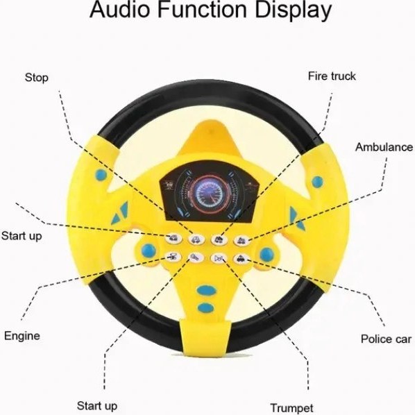 - امکانات متنوع و سرگرمکننده: فرمان موزیکال دارای دکمههای مختلفی است که صداهای متنوعی مانند صدای ماشین، بوق، آهنگهای شاد و جلوههای صوتی دیگر تولید میکنند. این صداها، حس واقعی رانندگی را به کودک القا میکنند و او را در دنیایی از تخیل و خلاقیت غرق میکنند.